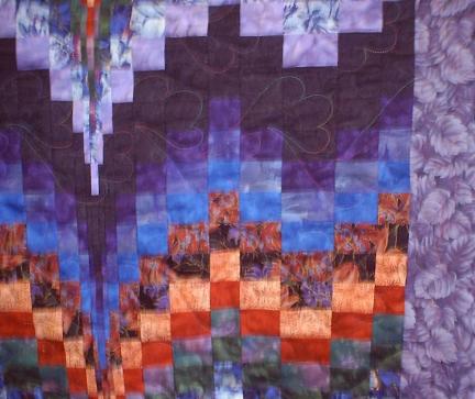 Detail of the bargello quilt, showing the cotton candy quilting pattern.