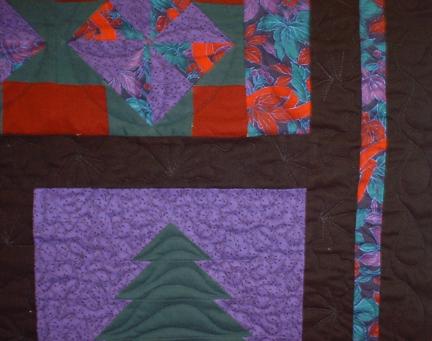 Detail of two of the blocks in the lower right corner of lap quilt above.