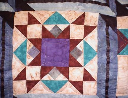 Detail of one of the star blocks in the sampler, showing typical arc treatment.