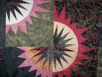 Another "Sunflower Illusions" quilt, a Judy Niemeyer design, quilted in concentric circle theme.
