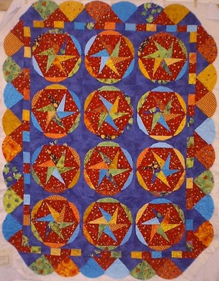 Close-up of the stack-and-whack above, showing concentric circle quilting in the stars.