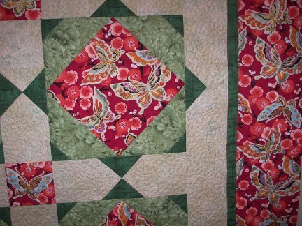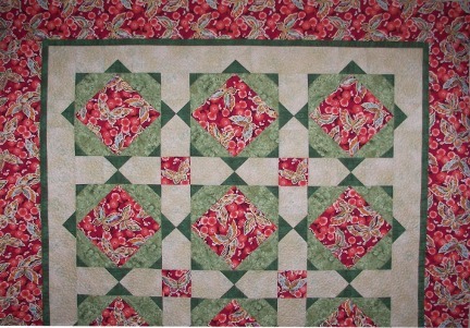 To select only quilts pieced by the same client, select the client id from the list below, or "all" to view all quilts NOTE: To protect client's privacy, quilts are identified by client number only. If you don't know your client number, click on one of your quilts in the gallery: it will appear in the address line on your browser as the "custid" value. Or, you can call or email us: customer numbers will be on the address label in our Newsletter. | What Our Clients Are PiecingThe quilts pictured below are client quilts, with the most recently completed ones first. Click here for more about the above appliqued quilt. Quilts keep the same index numbers when new quilts are added. This means the you can find your quilt quickly no matter how long ago it was quilted: once you find your quilt in the gallery, click on the picture, then you can bookmark that page (Add to Favorites in Microsoft Internet Explorer) or email a link to the page so your family and friends will be able to go directly to your quilt. Quilt pictures stay in the gallery as long as we have space to hold them. Or, if you click on the links below in each description, you can display only quilts pieced by the same client. If you know the client number, you can use the client selection form in the sidebar at left to show only your own quilts (or those of a friend or family member).