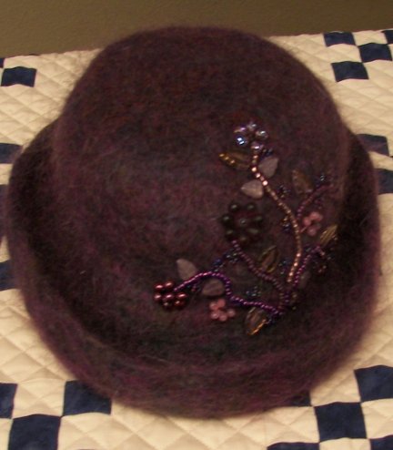 A bead-embellished felt hat. The hat