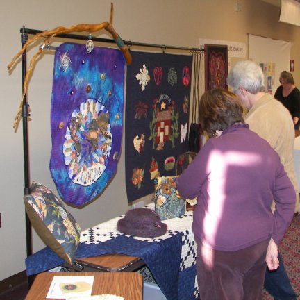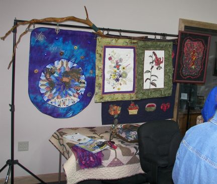 Display at Judy's trunk show at the "A Thread Runs Through It" quilt guild meeting, May 3, 2007.