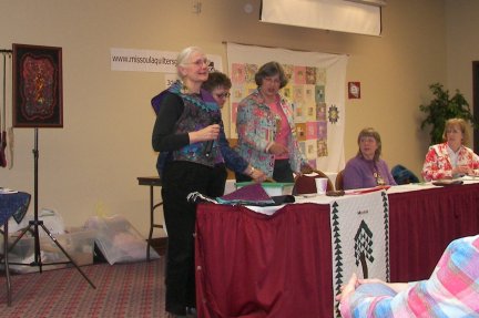 Judy gives a trunk show presentation at the March 14, 2007 meeting of the Missoula Quilter's Guild, on beaded embellishments.