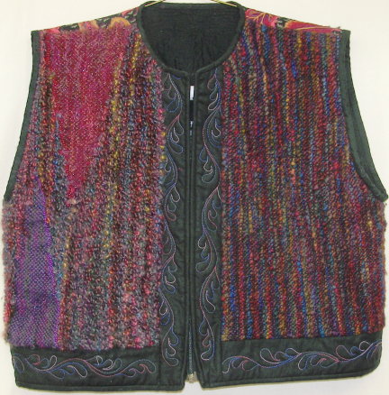 A quilted and hand-woven vest, embellished lightly with beads.