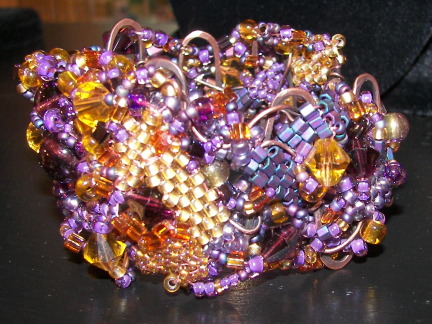Title piece: "Brigid," a 9.5-inch (24cm) bead sculpture on a fabric armature, which won first place in the 2005 challenge show sponsored by The Beaded Pony of Stevensville, Montana, and a Reserve Grand Champion award in the 2006 Ravalli County Fair. Original design by Judy.