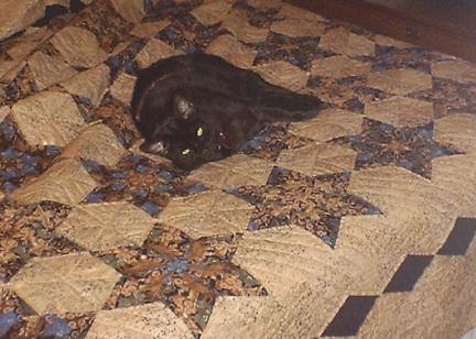Of course, family quilts get everyone involved: even the webmaster gets his fingers pried off the keyboard from time to time and put to work hand-stitching binding.