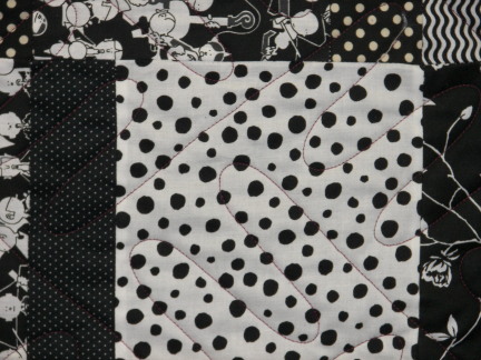 Detail of the quilting on the 4-patch Turning Twenty quilt above.