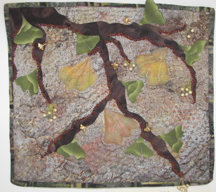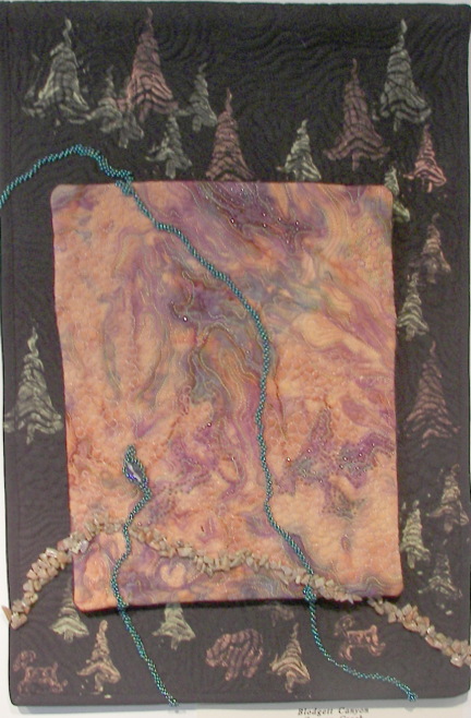 Canyon Creek," commercial batik machine quilted and beaded, hand