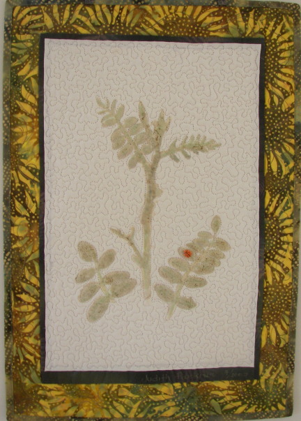 transfer to cotton, machine pieced and quilted.
