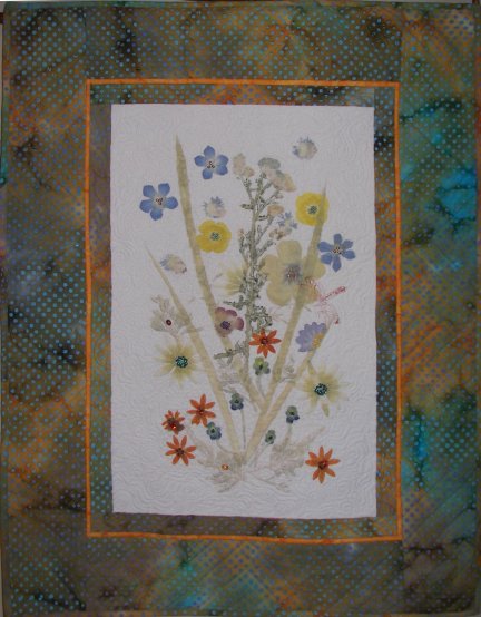 "Summer Thyme," a quilted wall hanging, hand-dyed with pounded natural flowers.